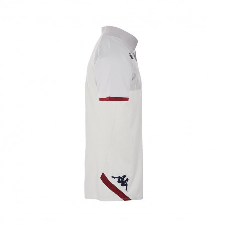 Polo officiel pour homme en piqué de coton. Coupe ajustée. Manches courtes, col côtelé, boutons au niveau du col, inserts sur le devant, sur les côtés et au bas des manches. Logo Omini brodé sur la poitrine et sur les côtés. Logo du club en gabardine brodé sur la poitrine, côté coeur.